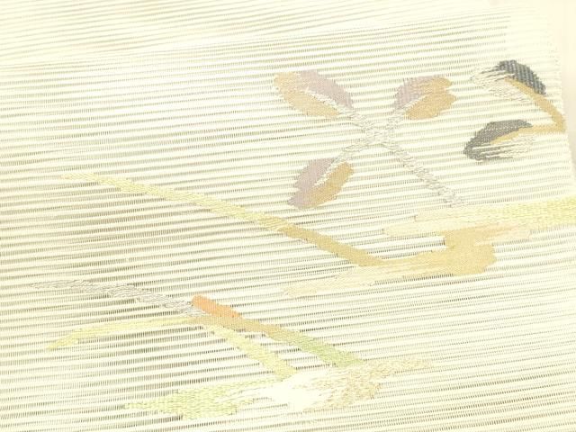 平和屋着物 夏物 絽綴れ 八寸名古屋帯 枝葉文 金糸 正絹 DAAX8662cm GLOBALQUALITYIMPORTS_COM