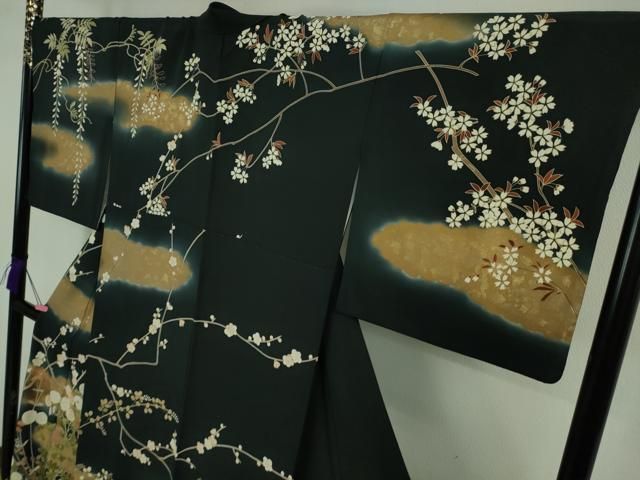 平和屋本店 上 訪問着 駒刺繍 秋草文 暈し染め 黒地 金彩 DZAB0764kh5の検索結果