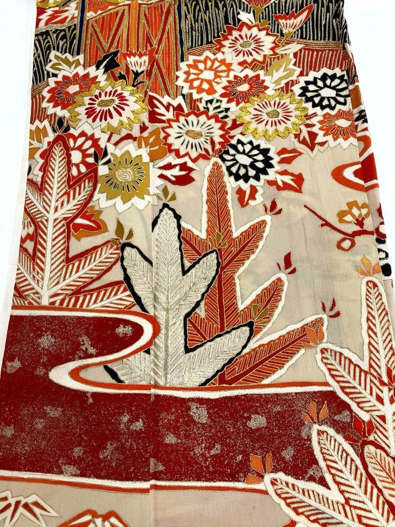 アンティーク 振袖 金駒 金彩 銀彩 正絹 身丈167cm 比翼付き 紋付の検索結果