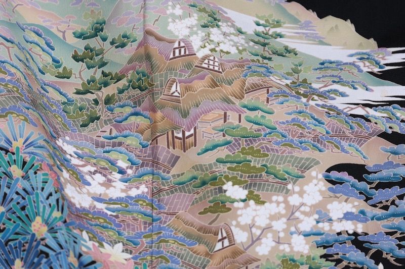 平和屋着物 本加賀友禅作家 金津五雄 豪華黒留袖 遠山松竹梅風景文 暈し染め 正絹 CAAW8029yc