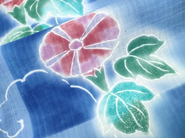 平和屋着物∴夏物 浴衣 朝顔 アサガオ 市松花文 暈し染め CAAW1123ng GLOBALQUALITYIMPORTS_COM