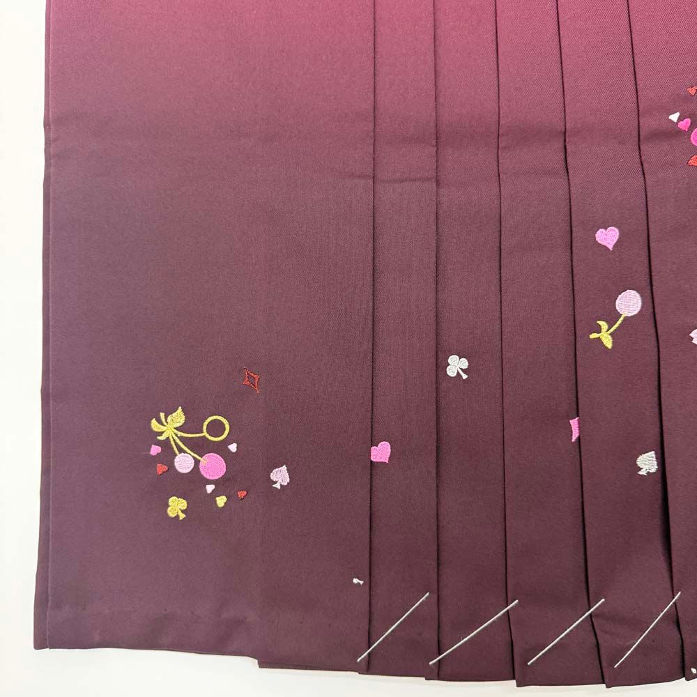 袴 S size 紐下丈87.5cm 行灯袴 卒業袴 女性用袴 ぼかし 刺繍 エンジ 紫 4701