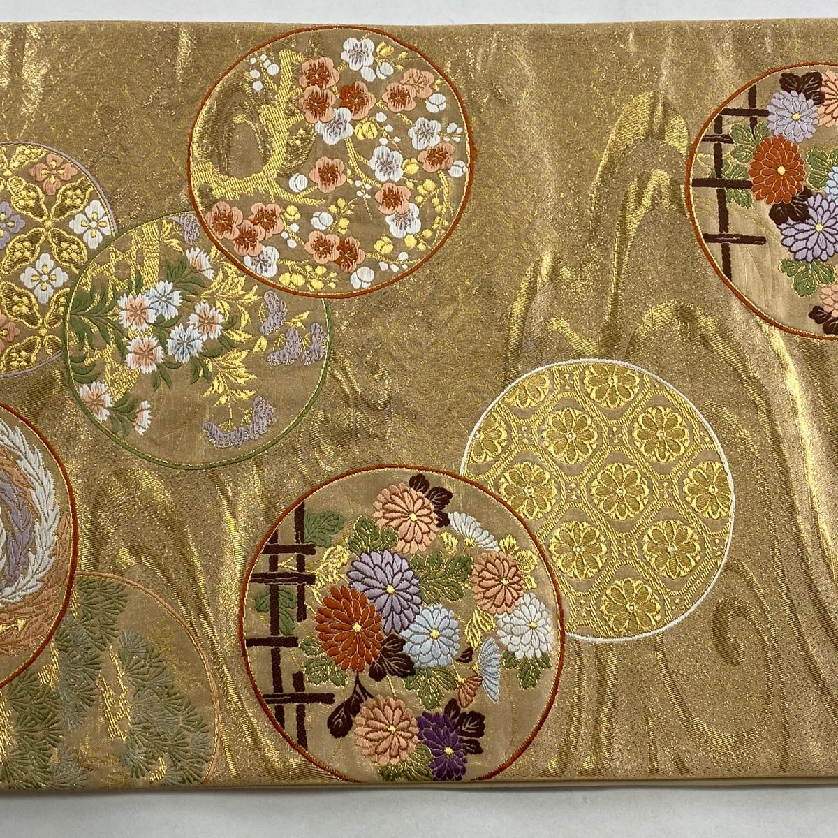 袋帯 秀品 丸文 花鳥 金糸 箔 金色 六通 正絹 GLOBALQUALITYIMPORTS_COM