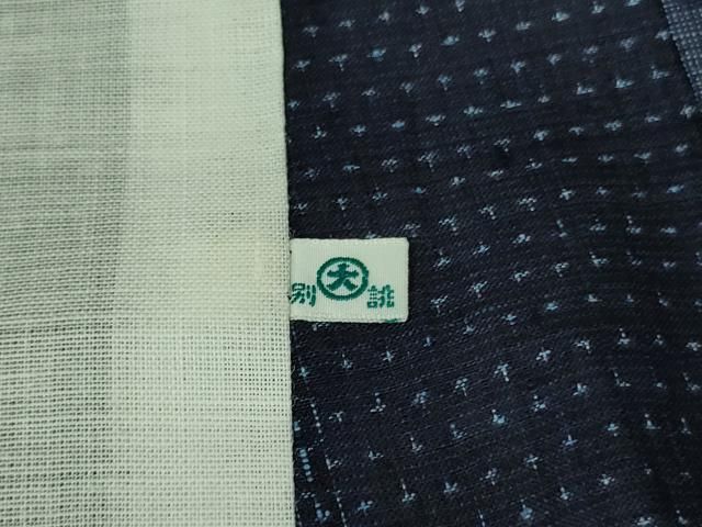 平和屋着物 上 夏物 石川県指定無形文化財 能登上布 本麻手織上布 亀甲繋ぎ 藍墨茶色地 DZAA9986kh5