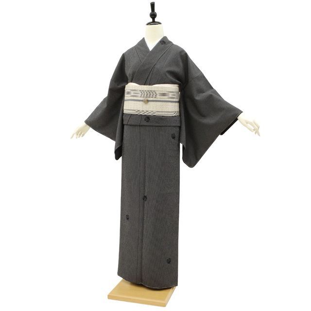 新古品 塩沢 袷 着物 正絹 塩澤 黒 ブラック 縞 鈴 かわいい モダン お洒落 モノトーン カジュアル 春 秋 冬 塩澤 仕立て上がり 身丈168 裄68 Lサイズ みやがわ sb16468 GLOBALQUALITYIMPORTS_COM