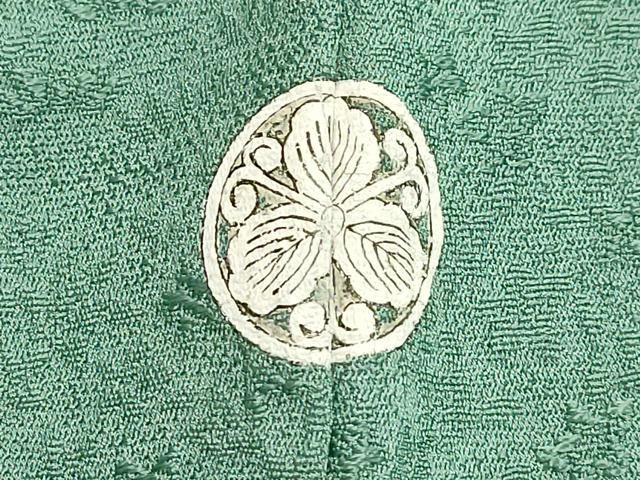 小紋 身丈169cm 裄丈69cm L 袷 鈴乃屋 菊 市松 ちりめん 抹茶色 正絹 秀品