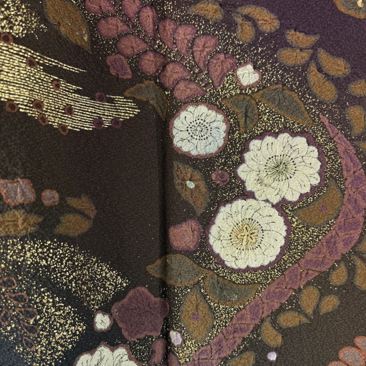 訪問着 身丈165.5cm 裄丈69cm L 袷 吉乃一廉 落款 辻ヶ花 流水 金彩 染め分け 濃紫 正絹の検索結果