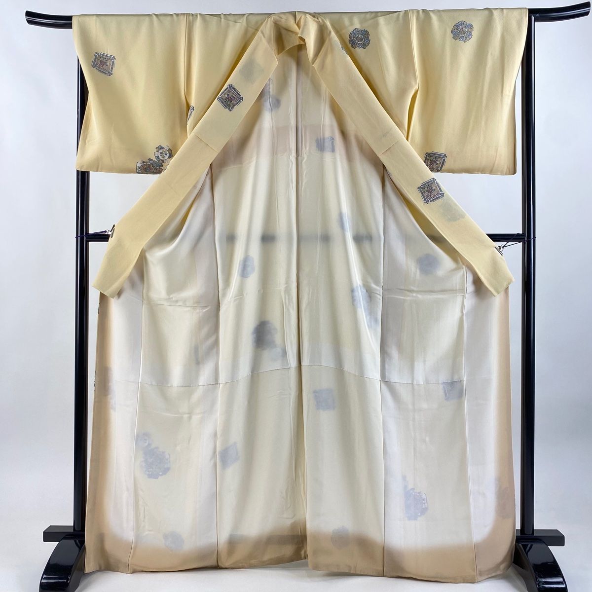 小紋 身丈168cm 裄丈66cm M 袷 加賀友禅 証紙 破れ絵皿 草花 薄黄 正絹 秀品の検索結果