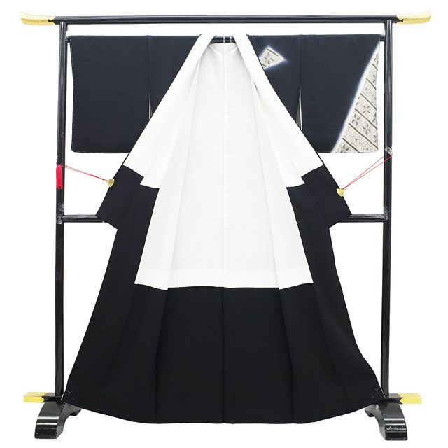 新古品 訪問着 着物 袷 正絹 手染め 銀彩加工 黒 麻の葉 地紋 市松 おしゃれ セミフォーマル ~ カジュアル 春 秋 冬 上質 着物 仕立て上がり 身丈165 裄丈66.5 Lサイズ みやがわ sb16414 GLOBALQUALITYIMPORTS_COM
