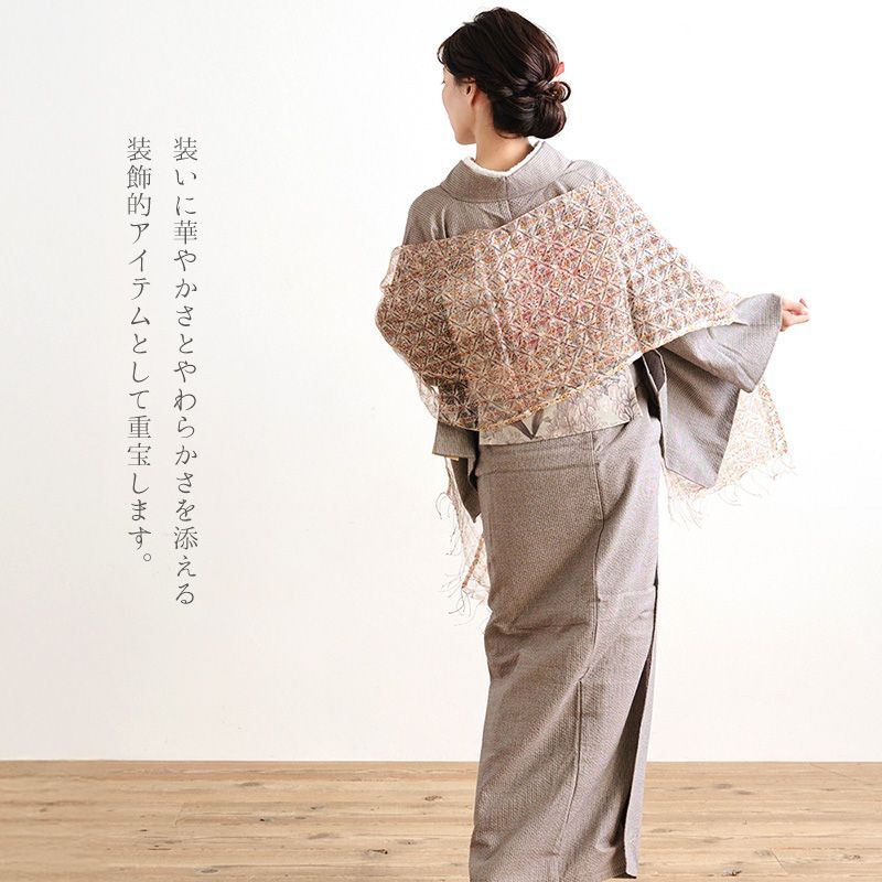 育てるショール 色無地 老舗ブランド 奥順謹製 結城紬 ショール ストール 絹100% 和装 洋装 着物 小紋 訪問着 着付け 羽織 着物コート 着物防寒 春 夏 秋 冬 通年 毛皮 着物ショール 道中着 ポンチョ 和装小物 プレゼント IT