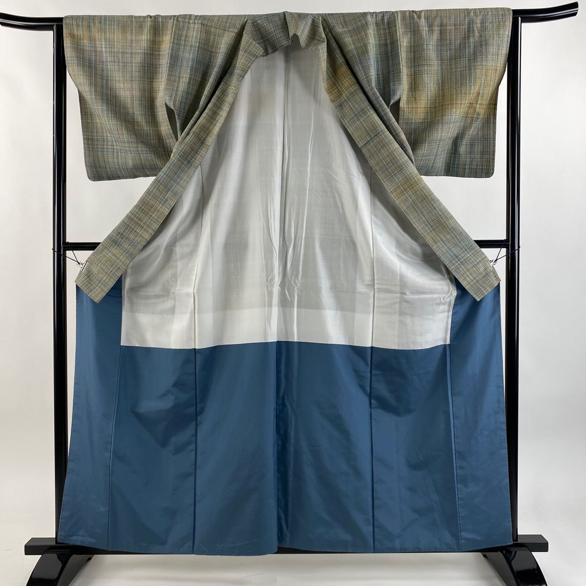 結城紬 身丈161cm 裄丈63.5cm S 袷 本場結城紬 奥順 証紙 青灰色 正絹の検索結果