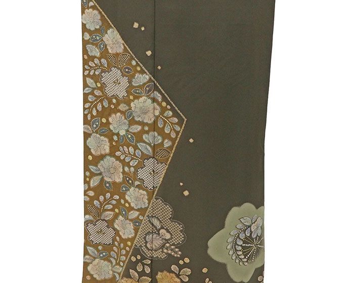 訪問着 辻ヶ花 金彩 蜀江紋 七宝 藤 グリーン 紋無し 着物 091a d