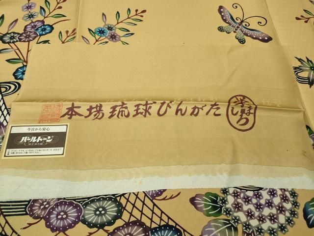 平和屋本店 最 城間栄順 本場琉球紅型 訪問着 舞蝶花文 飴色地 反端付き DZAB0754kh5の検索結果