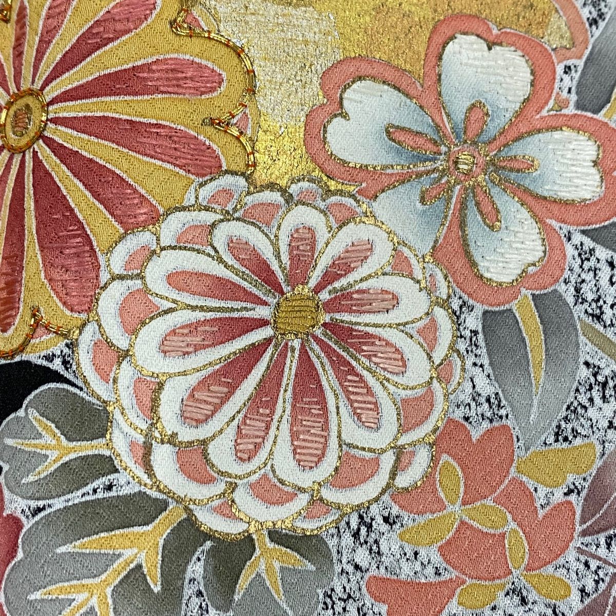 訪問着 身丈165cm 裄丈66cm M 袷 草花 シルエット 金銀彩 黒 正絹 秀品の検索結果