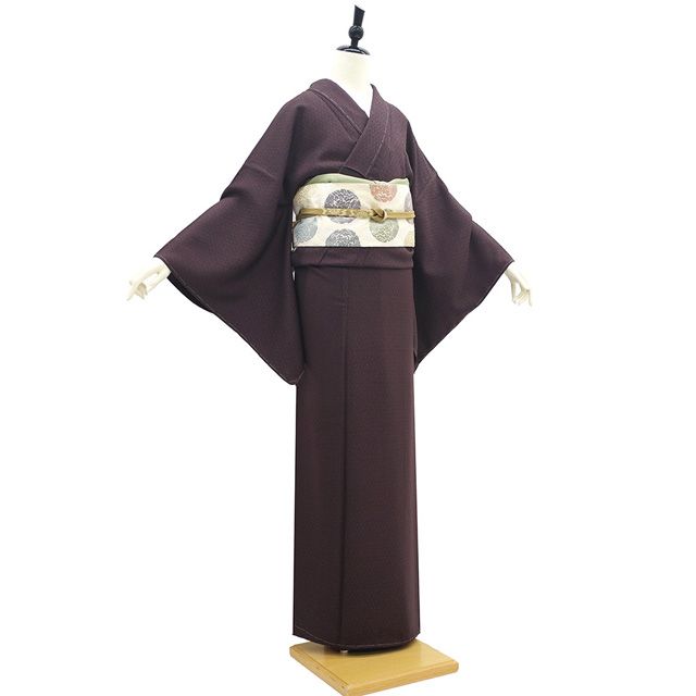 新古品 色無地 着物 正絹 袷 バーガンディー色 赤茶色 草花 セミフォーマル カジュアル 春 秋 冬 着物 身幅大きめサイズ 仕立て上がり 身丈175 裄丈71 ふくよか TLサイズ トールサイズ LL 2L みやがわ sb16355 GLOBALQUALITYIMPORTS_COM