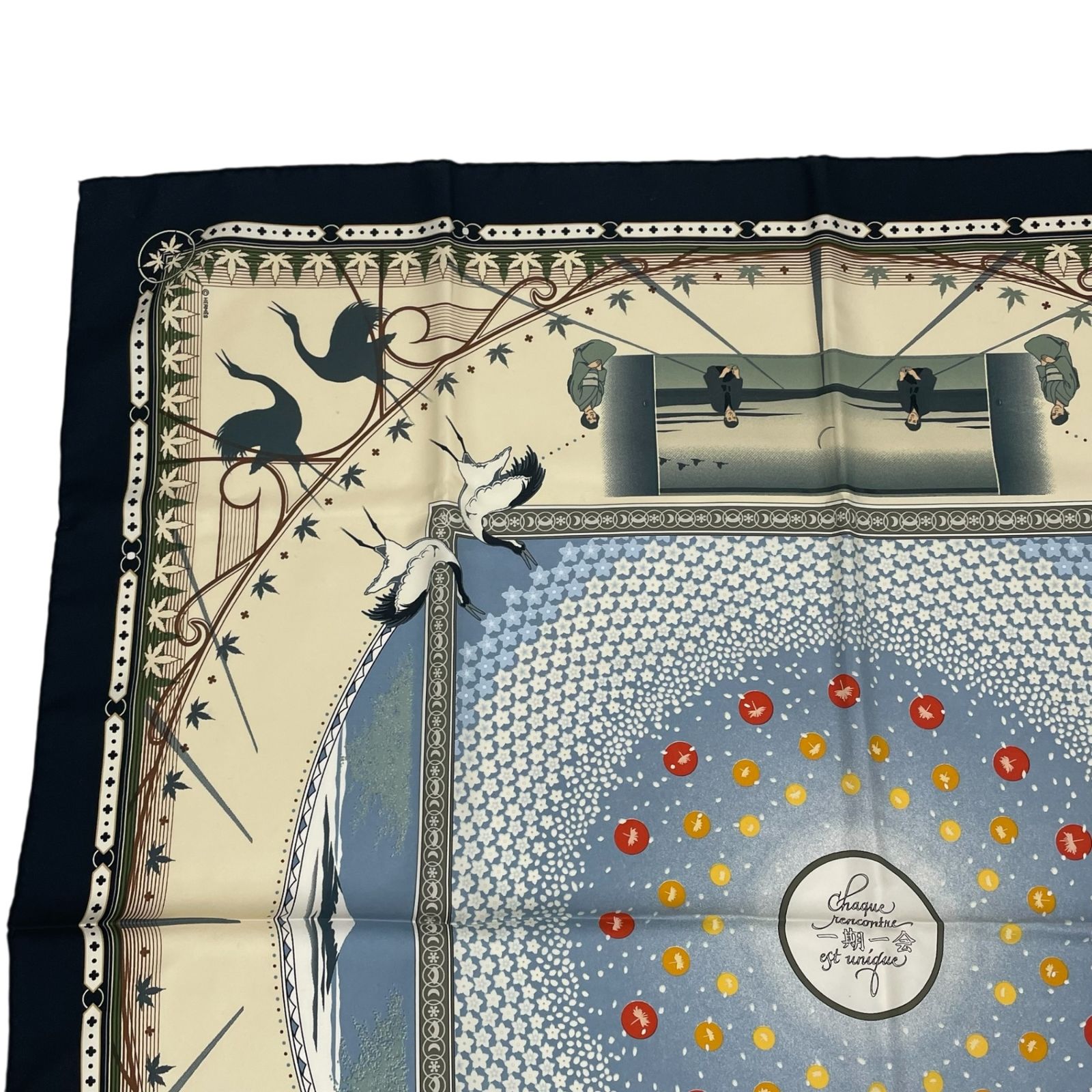 HERMES エルメス カレ90 CHAQUE RENCONTRE EST UNIQUE 一期一会 スカーフ 花鳥風月 鶴 き GLOBALQUALITYIMPORTS_COM