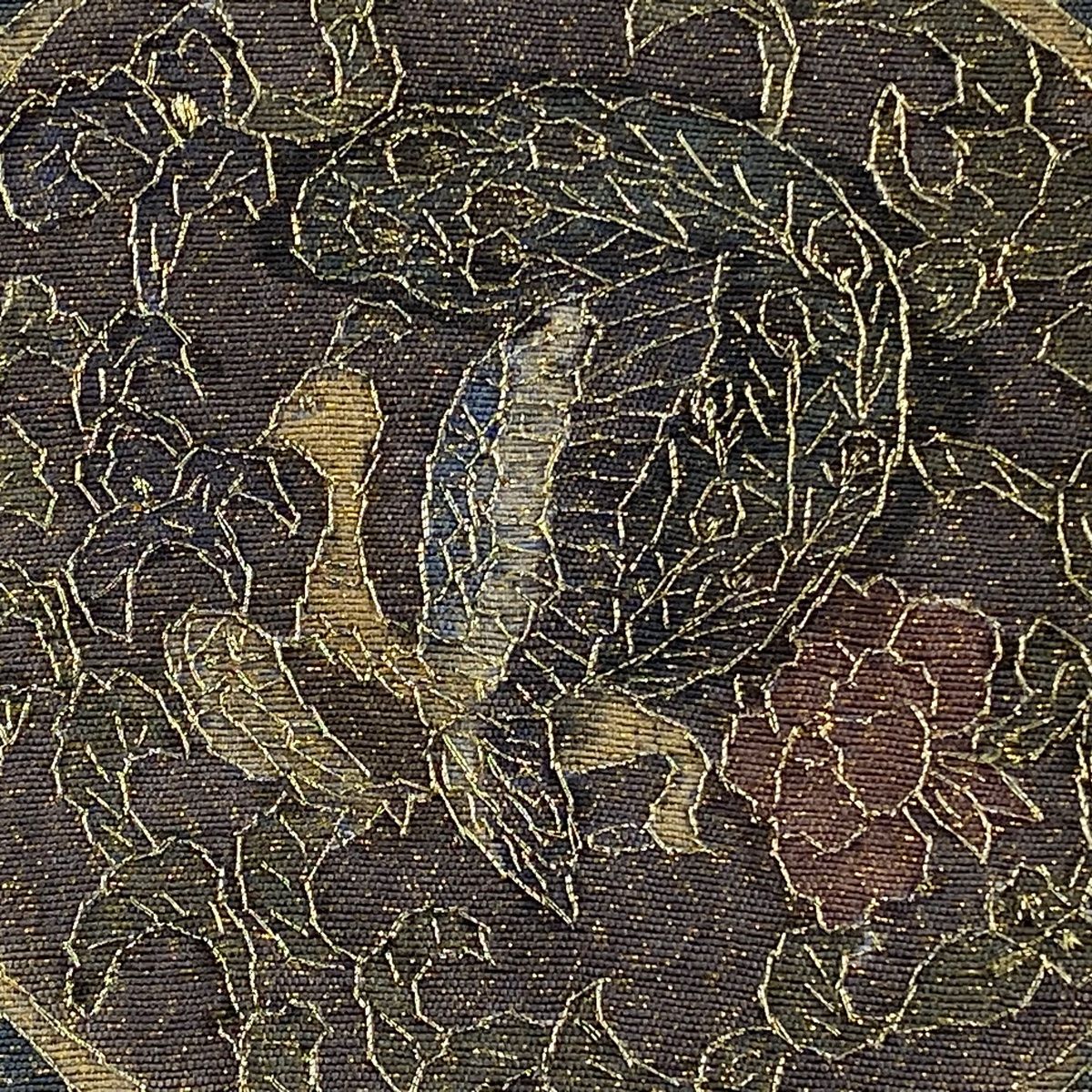 袋帯 草花 鳥 金糸 刺繍 灰茶 全通 正絹 GLOBALQUALITYIMPORTS_COM