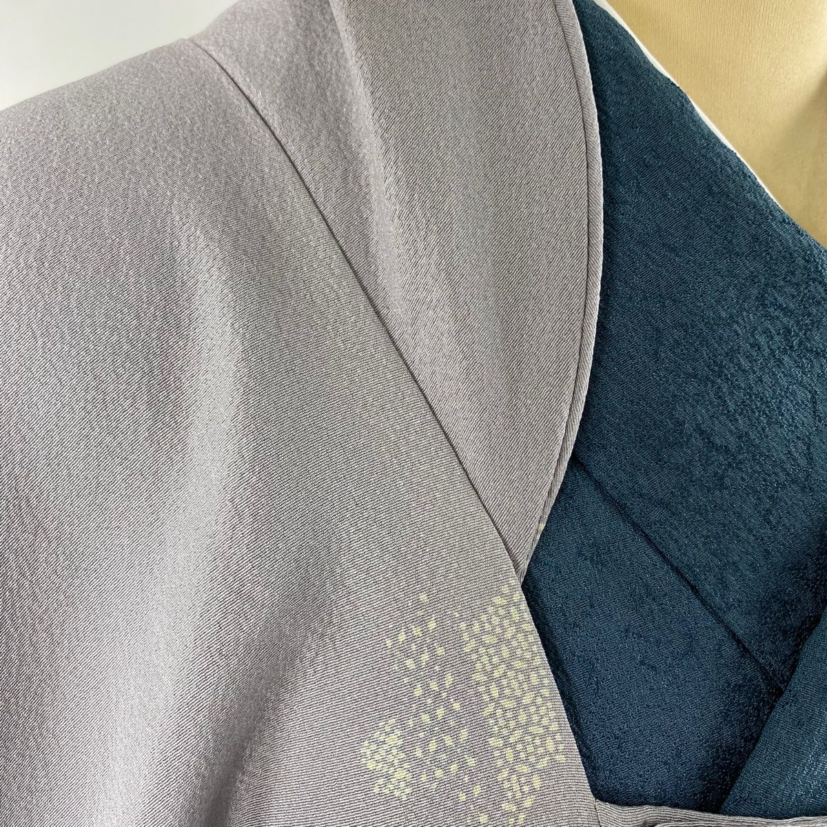 羽織 身丈101cm 裄丈64.5cm M シルエット 地紋 金彩 ぼかし 灰紫 正絹