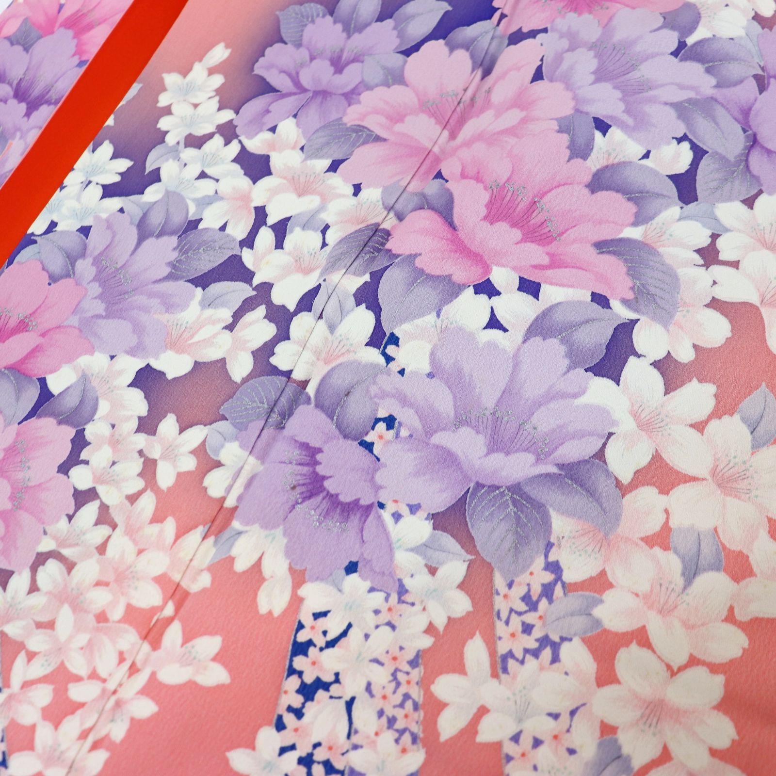 三日月とうさぎ a0707 振袖 正絹 艶やかな花尽くし模様 銀駒刺繍