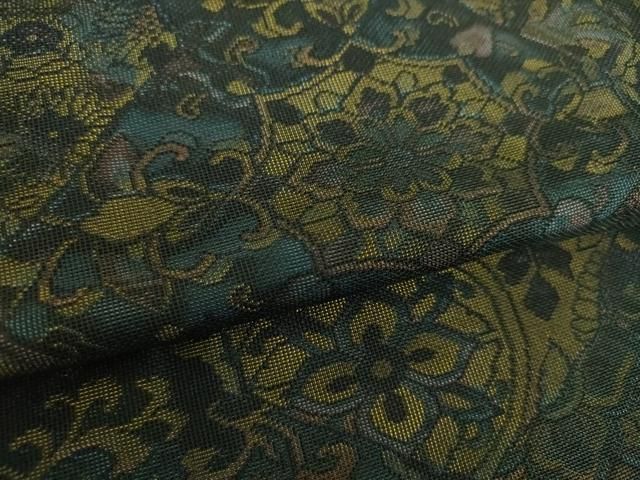 コート 道中着 着物 正絹 地模様 流水模様 深緑色 身丈101cm 裄67cm きもの北條 A1282-3