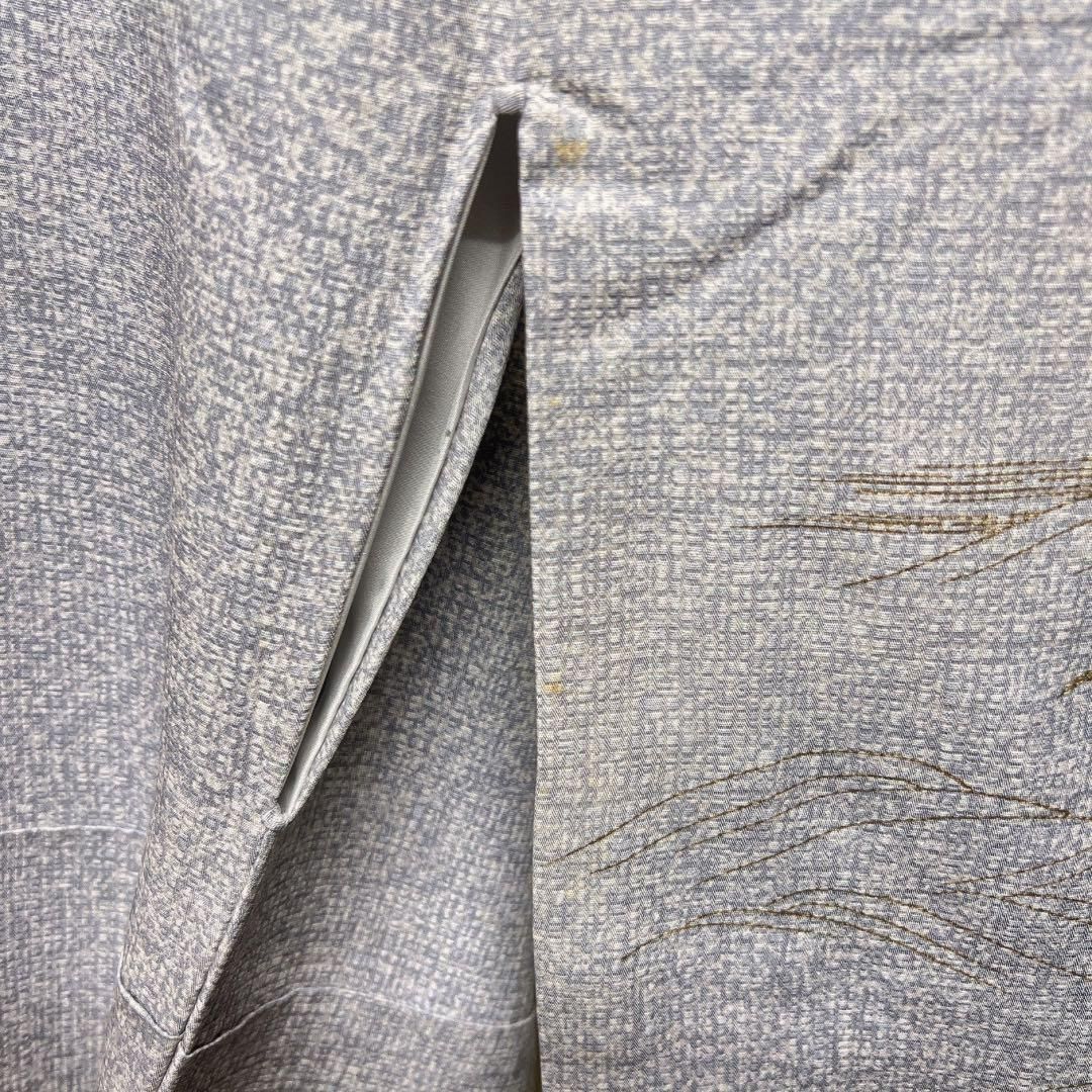 訪問着 身丈167cm 裄丈63.5cm S 袷 関口遼一 落款 童 花柄 ぼかし 灰緑 正絹 秀品
