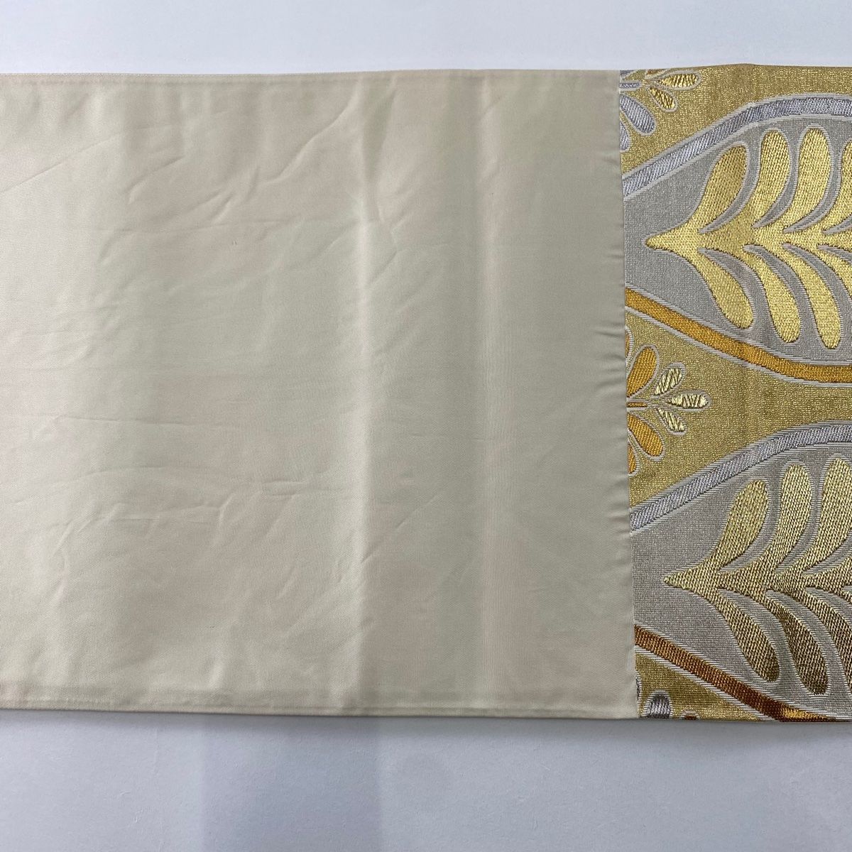 袋帯 秀品 関西仕立て 立涌 葉柄 金銀糸 ベージュ 六通 正絹 GLOBALQUALITYIMPORTS_COM