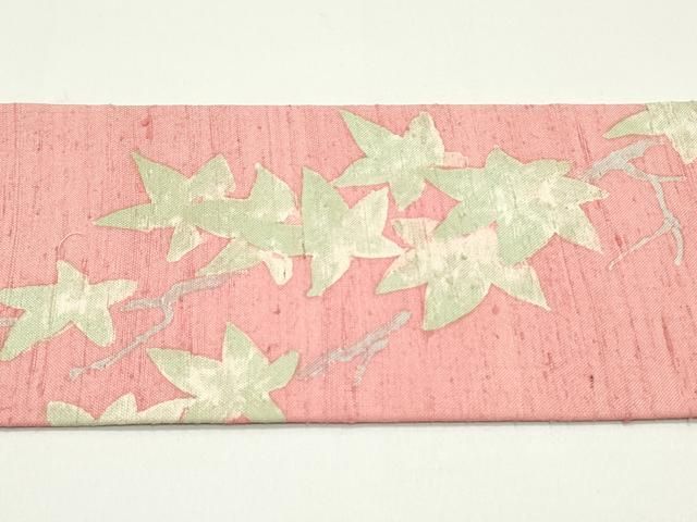 平和屋着物 九寸名古屋帯 紬地 枝葉文 甚三紅色 正絹 DAAW6604obの検索結果
