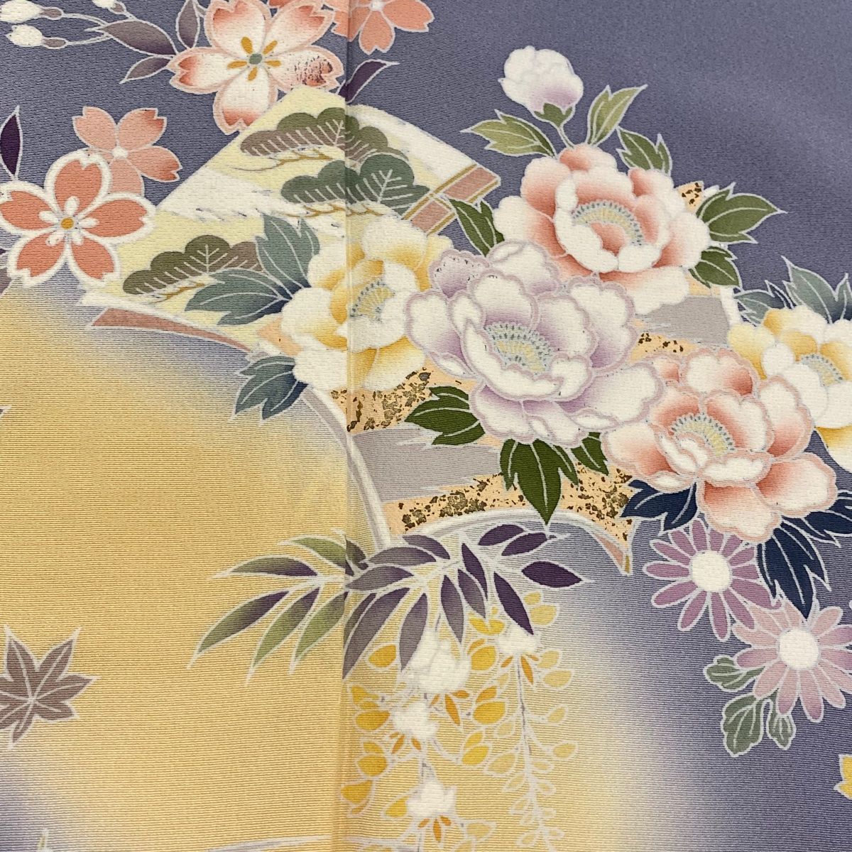 訪問着 身丈159.5cm 裄丈68cm L 袷 冊子 草花 金彩 ぼかし 青灰色 正絹 秀品の検索結果
