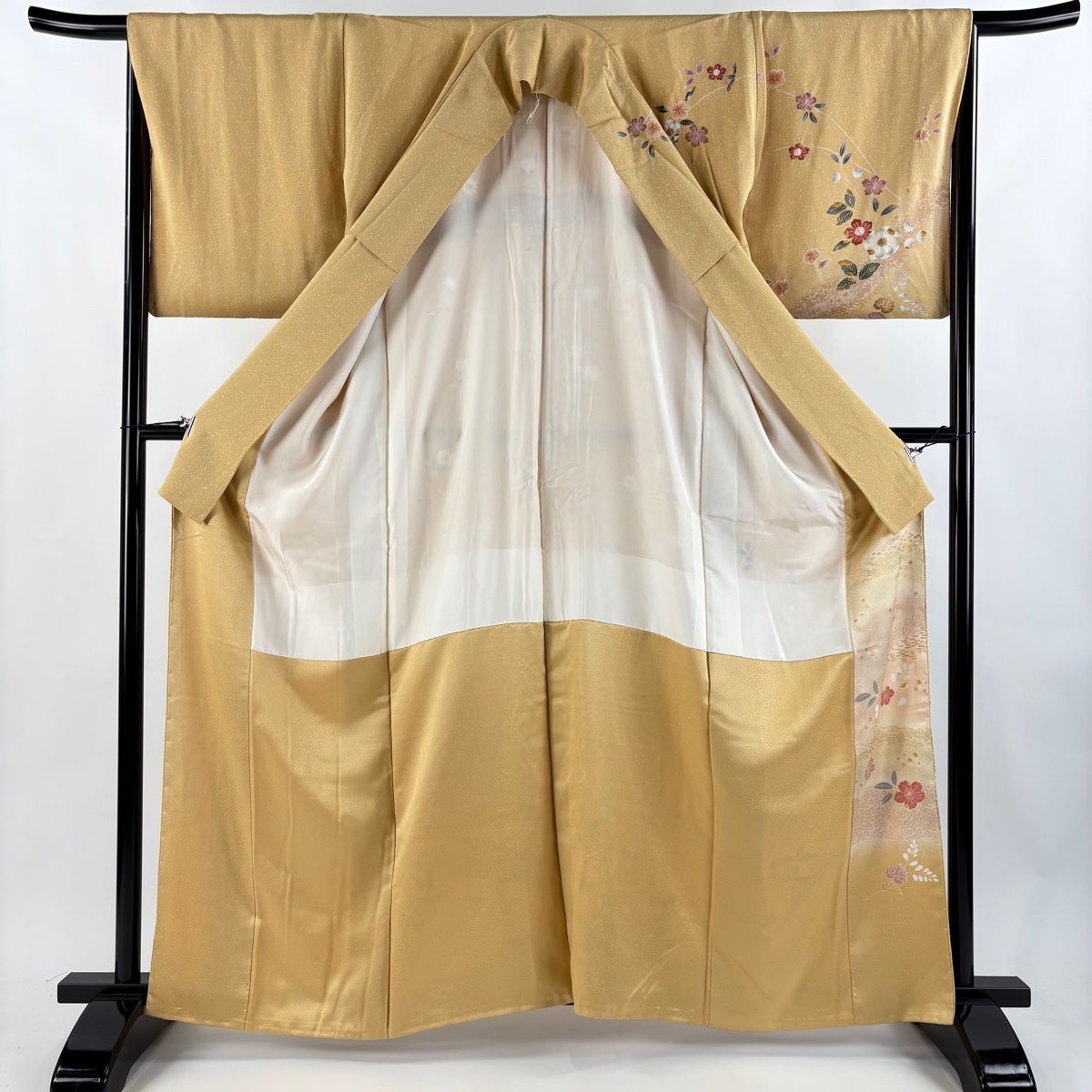 訪問着 身丈158.5cm 裄丈62.5cm S 袷 御所車 松竹梅 金糸 刺繍 山吹茶色 正絹 秀品