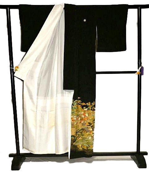 黒留袖 着物 創業460年 千總 金駒シシュウ 風景文 比翼付き 伊勢丹扱い 比翼付 身丈155cm 裄61cm 正絹 結婚式 T3639 GLOBALQUALITYIMPORTS_COM