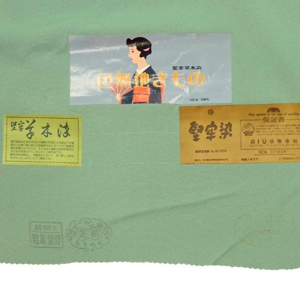 色無地反物 正絹 リユース 堅牢草木染 丹後ちりめん 若草色系 048-7R 8050-00405 GLOBALQUALITYIMPORTS_COM