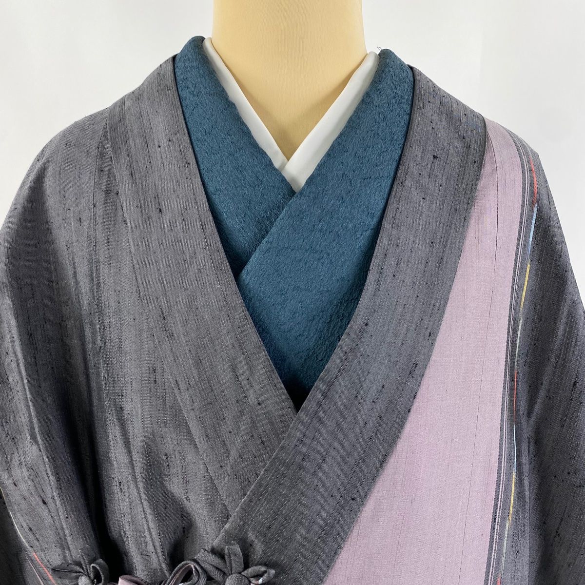 道中着 身丈110cm 裄丈66.5cm M 和装コート 着物衿 紬地 縞 灰色 正絹の検索結果