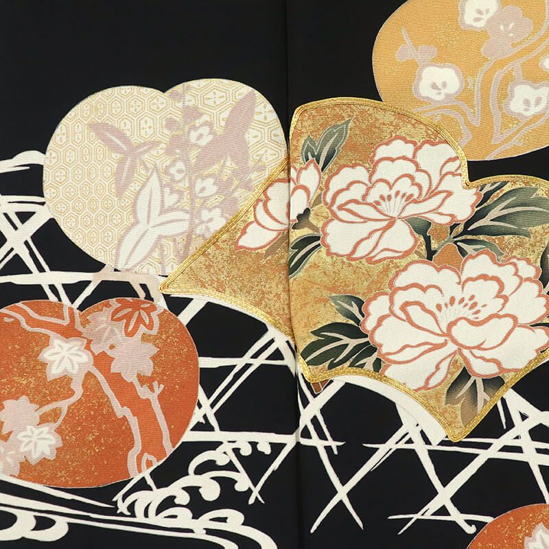 平和屋着物 上 アンティーク 大正ロマン 黒留袖 駒刺繍 檜扇飛鶴花文 金彩 CZAA3317s5
