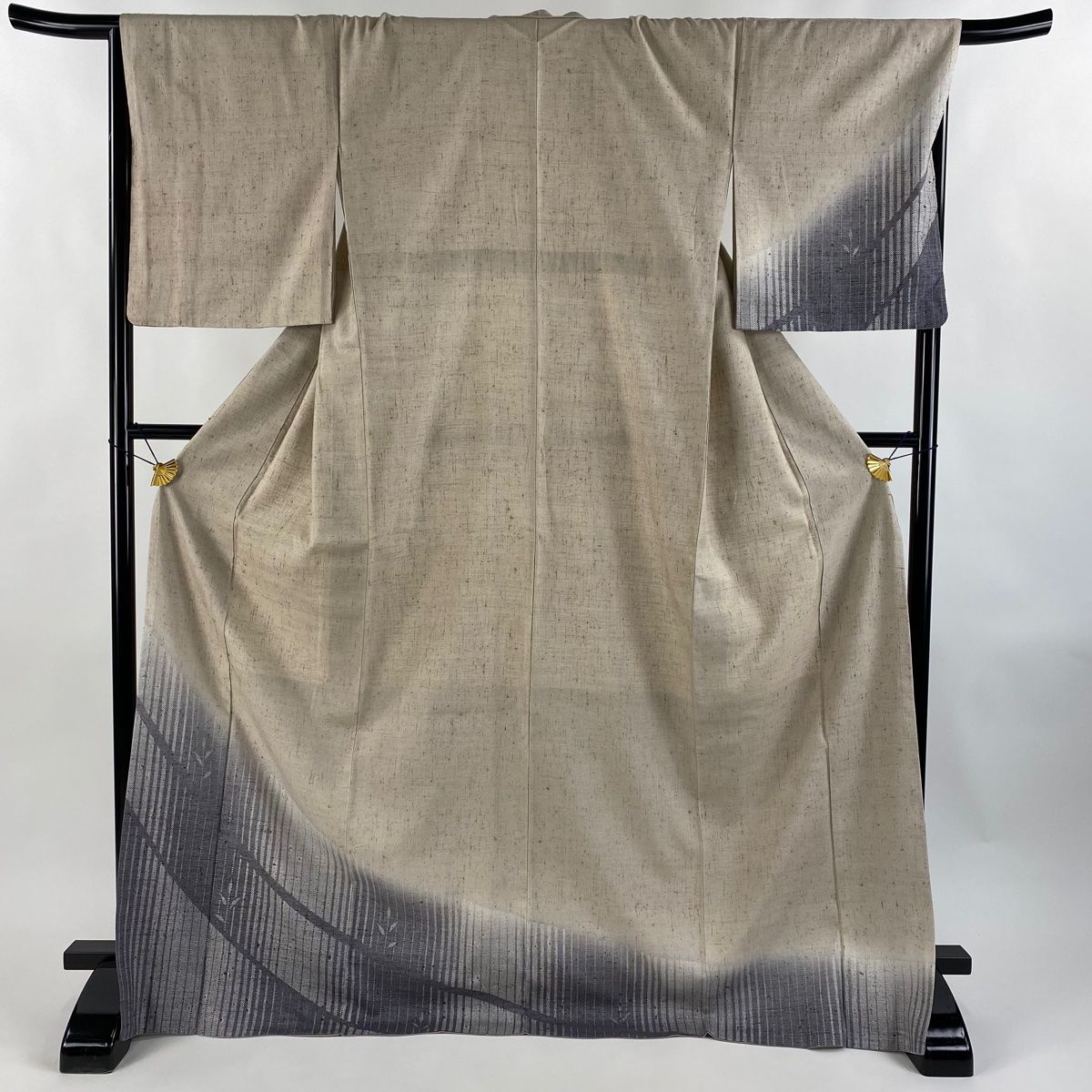 付下げ 身丈173cm 裄丈67cm M 袷 奥越後 魚沼ぜんまい紬 袋帯セット 縦縞 葉柄 薄茶色 正絹の検索結果