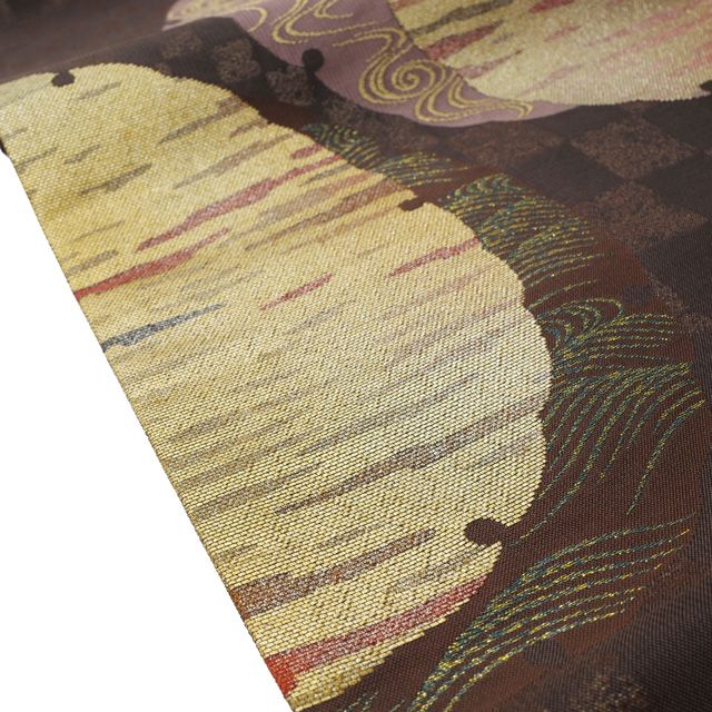 すごい値 袋帯 リサイクル 正絹 牛首紬 織り込み こげ茶 雪輪 霞 流水 市松 上質 カジュアル 仕立て上がり 春 秋 冬 お太鼓柄 パールトーン加工済 お出かけ お食事 ショッピング すごいね みやがわ neb01545 GLOBALQUALITYIMPORTS_COM