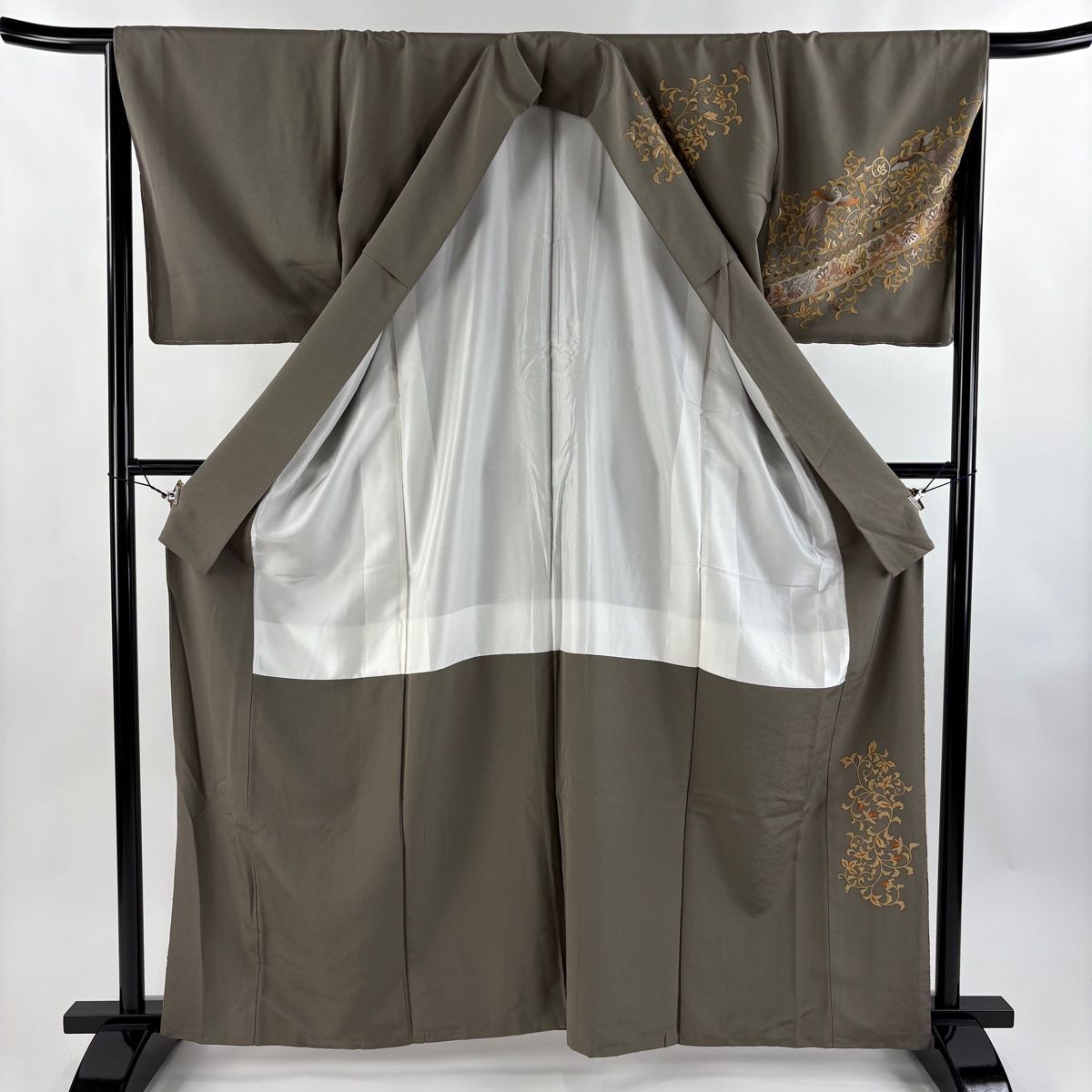訪問着 身丈162cm 裄丈65cm M 袷 花鳥 華文 金糸 刺繍 灰茶 正絹の検索結果