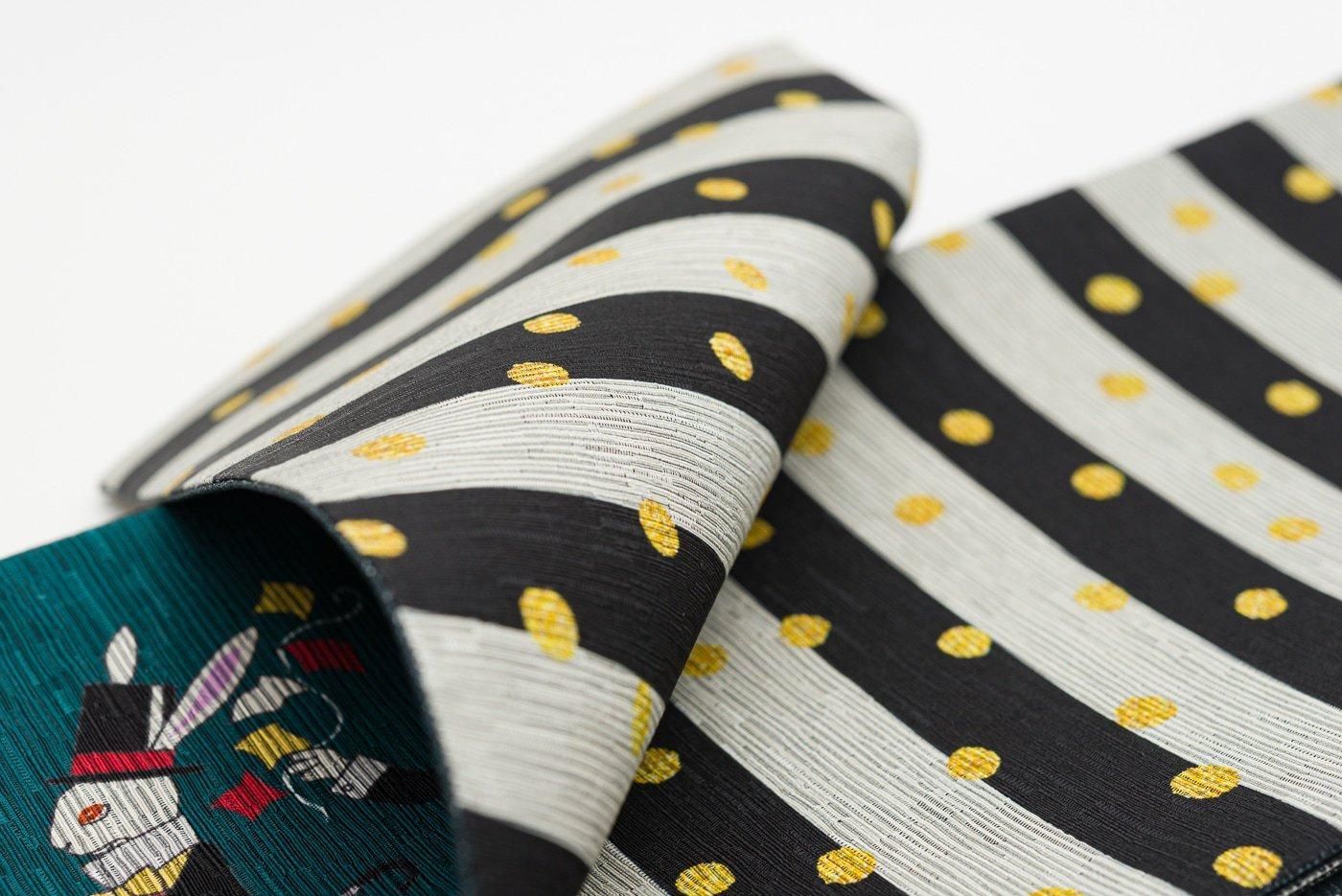 白うさぎが列をなしてダンスする、何とも楽しいデザインのリバーシブル半幅帯です。