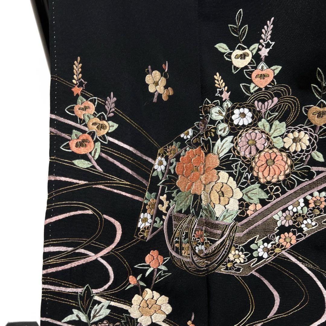 黒留袖 五つ紋 比翼付き 金駒刺繍 金彩 亀甲 菊 宝尽くし 着物 101b d