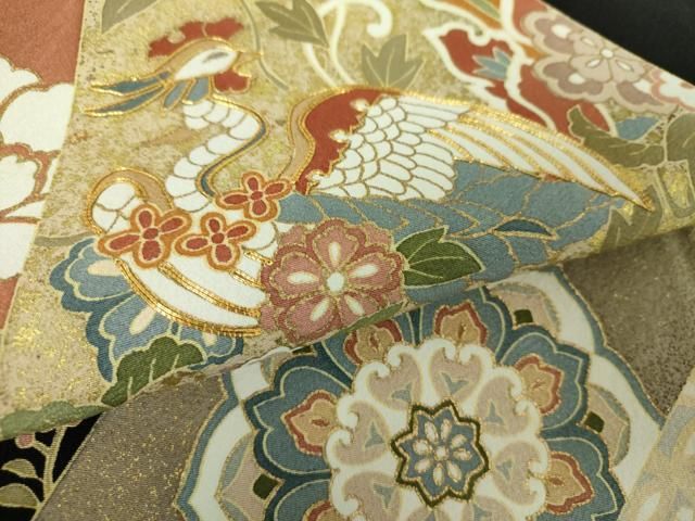 平和屋着物 日本画家 水嶋征夫 色留袖 飛鶴文 金銀彩 正絹 CAAX1088vf