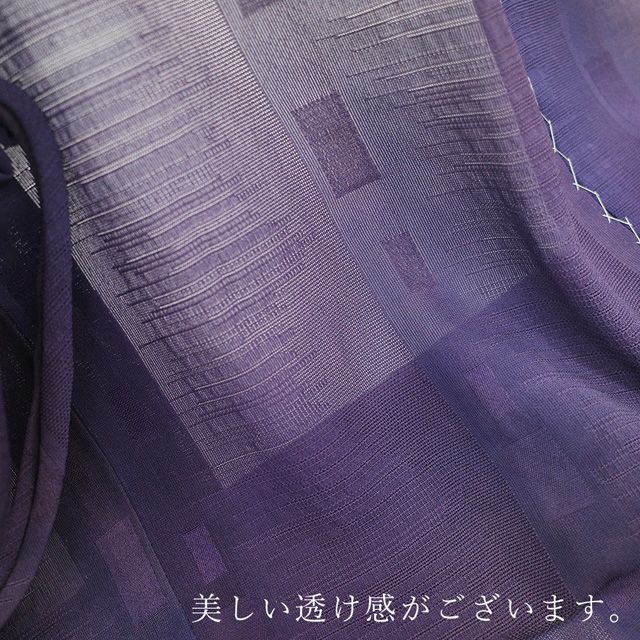 新古品 着物衿 コート 単衣 紋紗 正絹 紫 手ぼかし染 変わり縞 春 夏 秋 スリーシーズン セミフォーマル ~ カジュアル コート 着物衿コート 仕立て上がり 身丈117 裄丈69.5 Lサイズ 透け感 ハオリモノ みやがわ sb16432の検索結果