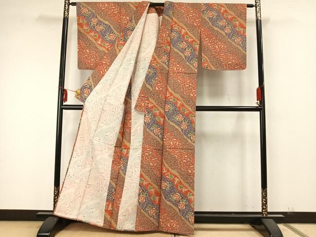 平和屋着物 上質な紬 単衣 花唐草間道 正絹 AABA7767fy