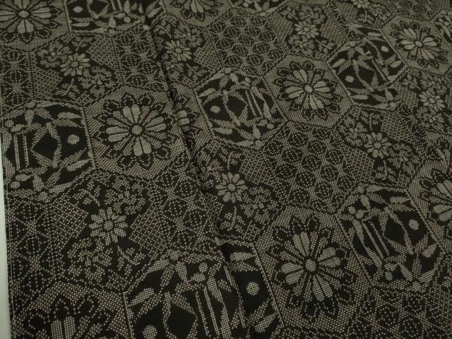平和屋着物 結城紬 80亀甲 花唐草間道 正絹 DAAW5976ud