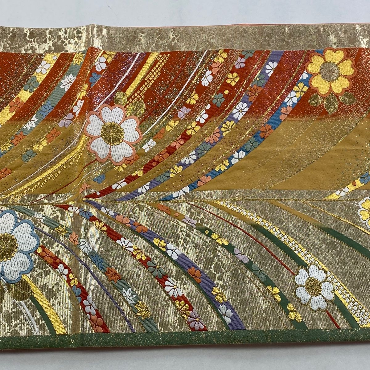 袋帯 秀品 関西仕立て 草花 金糸 唐織 黄土色 六通 正絹 GLOBALQUALITYIMPORTS_COM