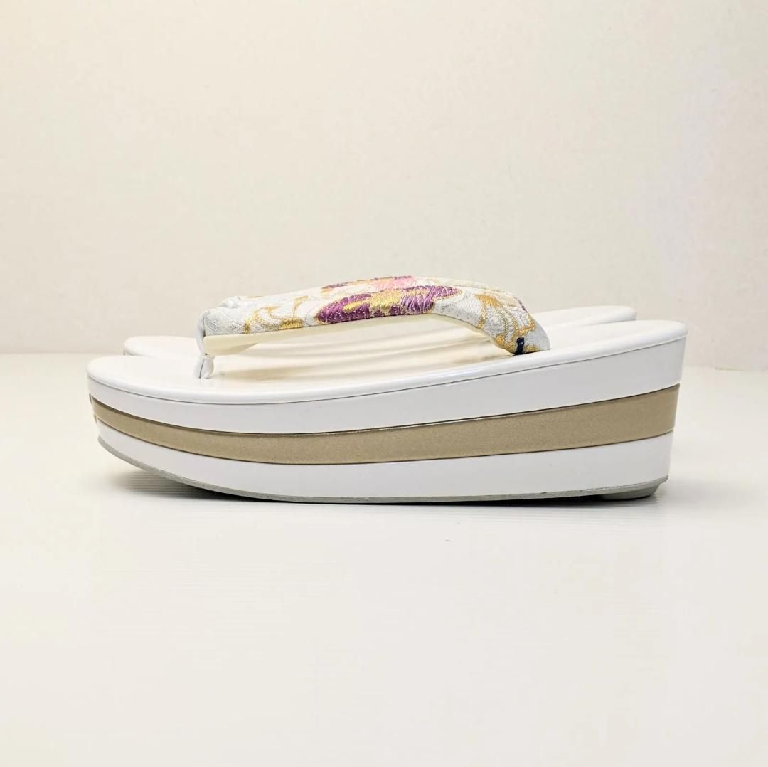 草履バッグセット 振袖用帯地 白×金 三枚芯 S M L LLサイズ w43-3の検索結果