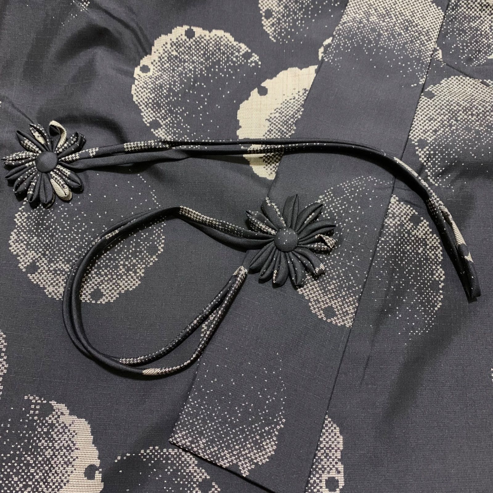 道中着 単衣 ロング 麻の葉に花柄模様 消炭黒色 H-4114