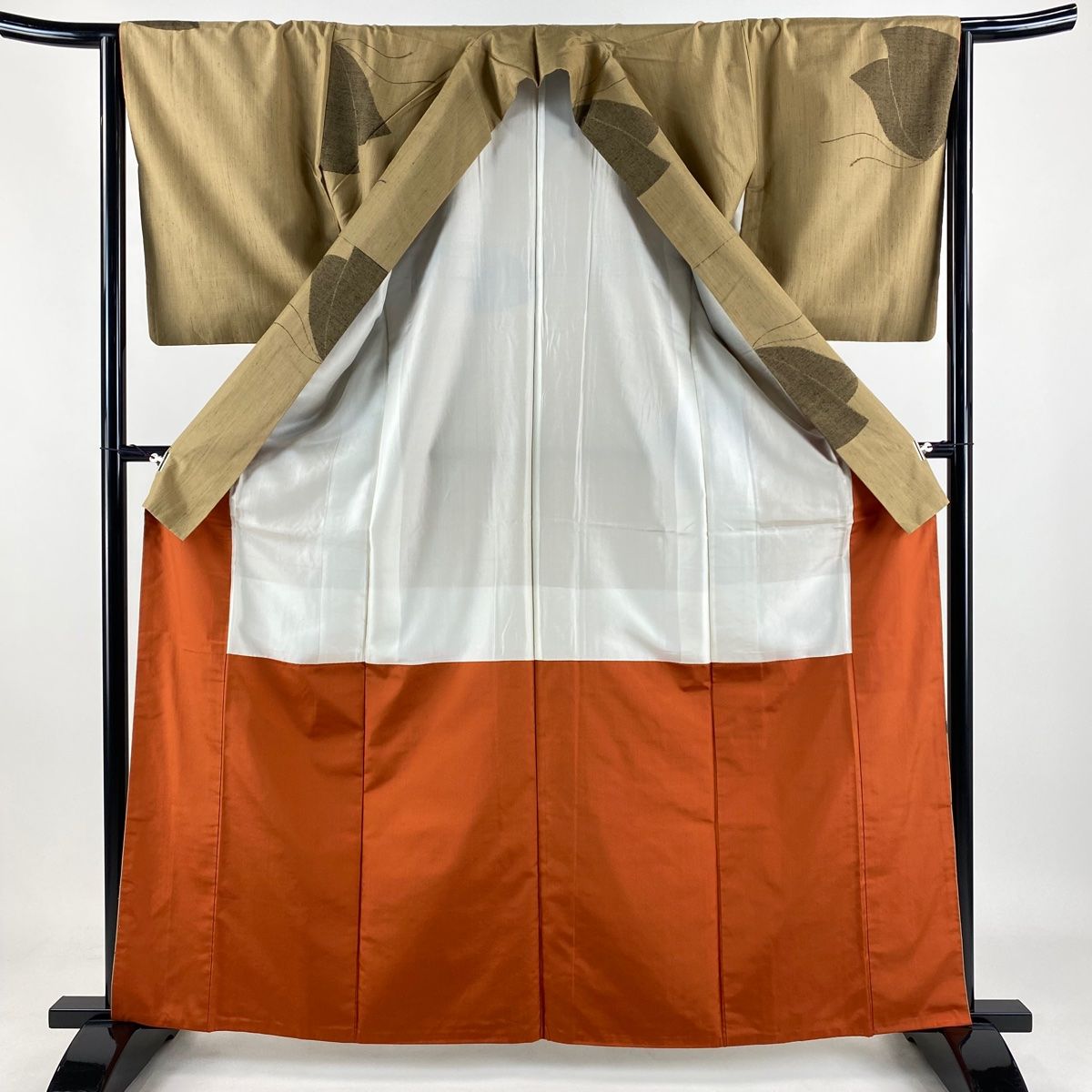 紬 身丈162.5cm 裄丈64.5cm M 袷 草木染 柿渋布 蝶 薄茶色 正絹 秀品の検索結果