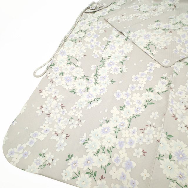 新古品 へちま衿 コート 袷 ペールグレー地 地紋 市松 菊 桜 花柄 草花 染め柄 エレガント かわいい お洒落 セミフォーマル カジュアル 新古品 仕立て上がり 身丈114 裄丈71 Lサイズ みやがわ sb16316の検索結果