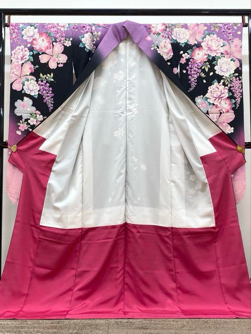振袖 身丈157cm 裄丈64cm M 袷 桜 蝶 金彩 染め分け 赤 正絹 秀品