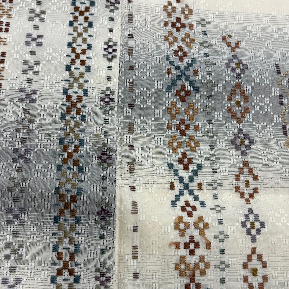 付下げ 身丈158cm 裄丈64.5cm M 袷 幾何学模様 段縞 刺繍 灰白 正絹の検索結果
