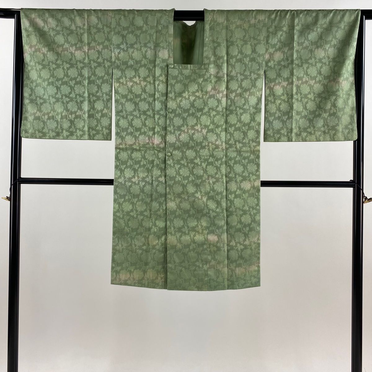 道行 身丈106cm 裄丈67cm M 和装コート 角衿 リバーシブル 地紋 花唐草 ぼかし よもぎ色 正絹の検索結果